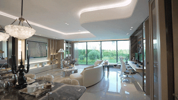 如许的双会所奢华设置装备摆设,可构成约6.5米大横厅,