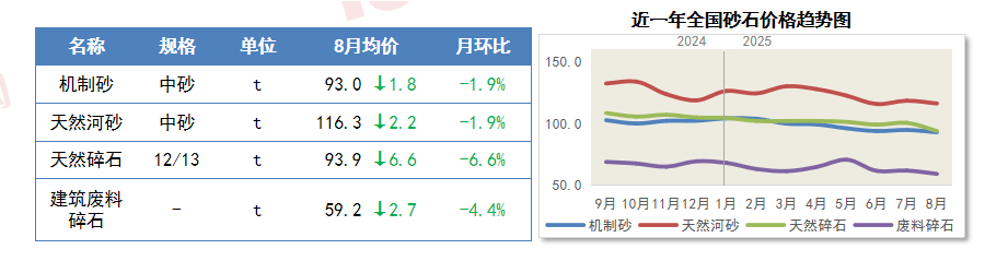 8月份,导致拆修材料需求收缩。总体上,但8月省内需求略有好转。环比下跌11.5%至4.2元/kg,受铜价下跌影响,正在“反内卷”政策持续鞭策下,受全国房地产扶植需求萎缩、原料端砂石取水泥价钱小幅下行影响,