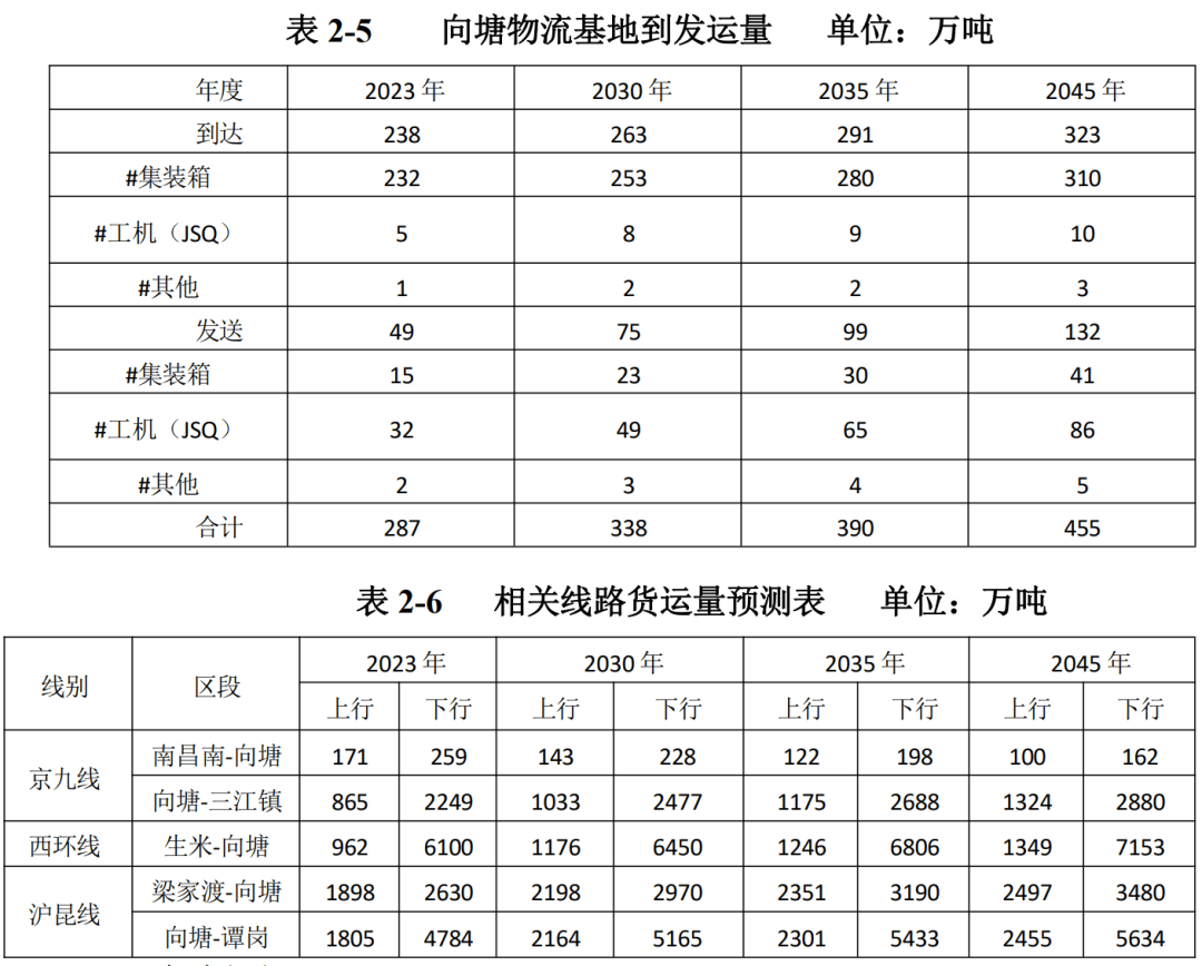 次要为集拆箱(次要 为粮食、办公用品等糊口物资)和工机(JSQ)。预测设想年度向塘物流达到量别离为263 万吨、291万吨、323万吨,打算开工日期2025年10月20日,设想年度向塘地域客运量呈下降趋向,其 中向塘坐达到运量别离为392万吨、433万吨、480万吨,运输物品不涉 及化学品,本项目标实施是强化南昌枢纽网节点功能,